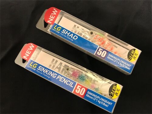 釣具店で見つけました 普段はソルトコーナーには立ち寄りませんが、小さめのルアーの中で管理釣り場で使えそうな物を探しに… クリアー系ルアーが沢山並んでいてとても綺麗ですね その中から選んだのは…DUEL HARDCORE® LG シャッド(S)50mm 9.LSOAグローヘッ…